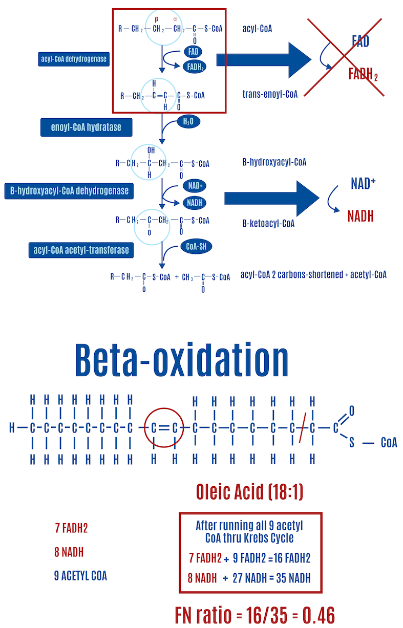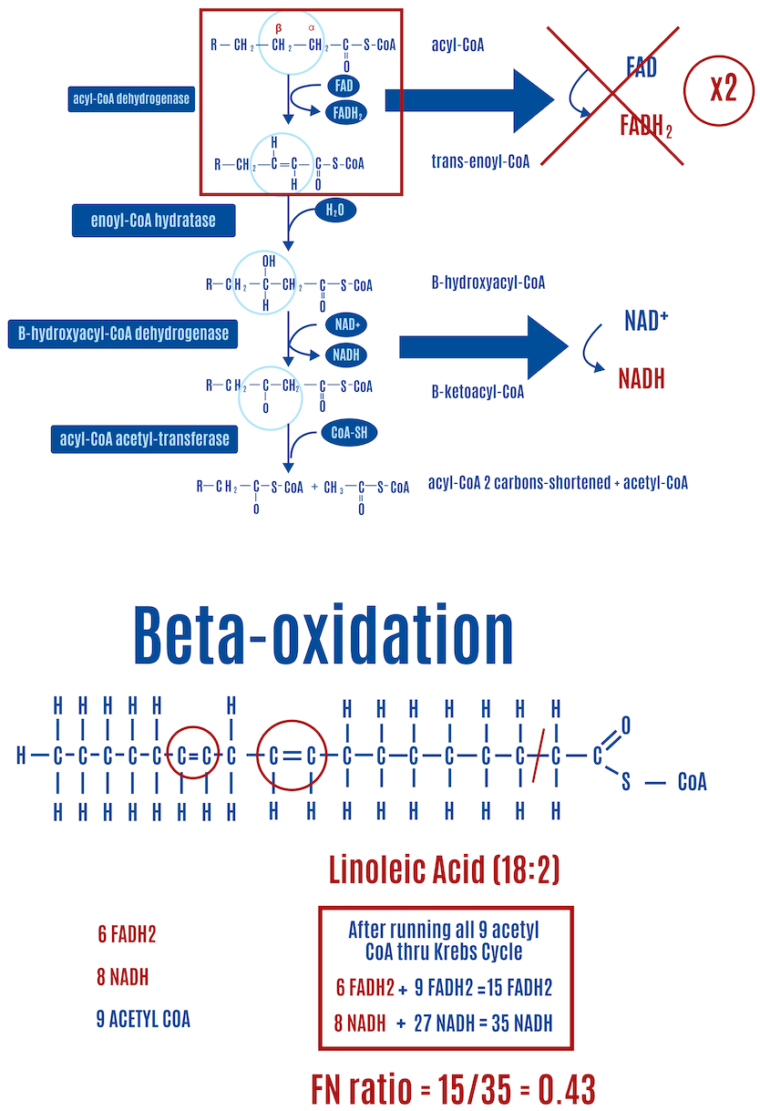 - A higher FN ratio can lead to reverse electron transport (RET), which produces ROS. Beta-oxidation of PUFAs generates a lower FN ratio, reducing the likelihood or amount of RET and subsequent ROS production.
