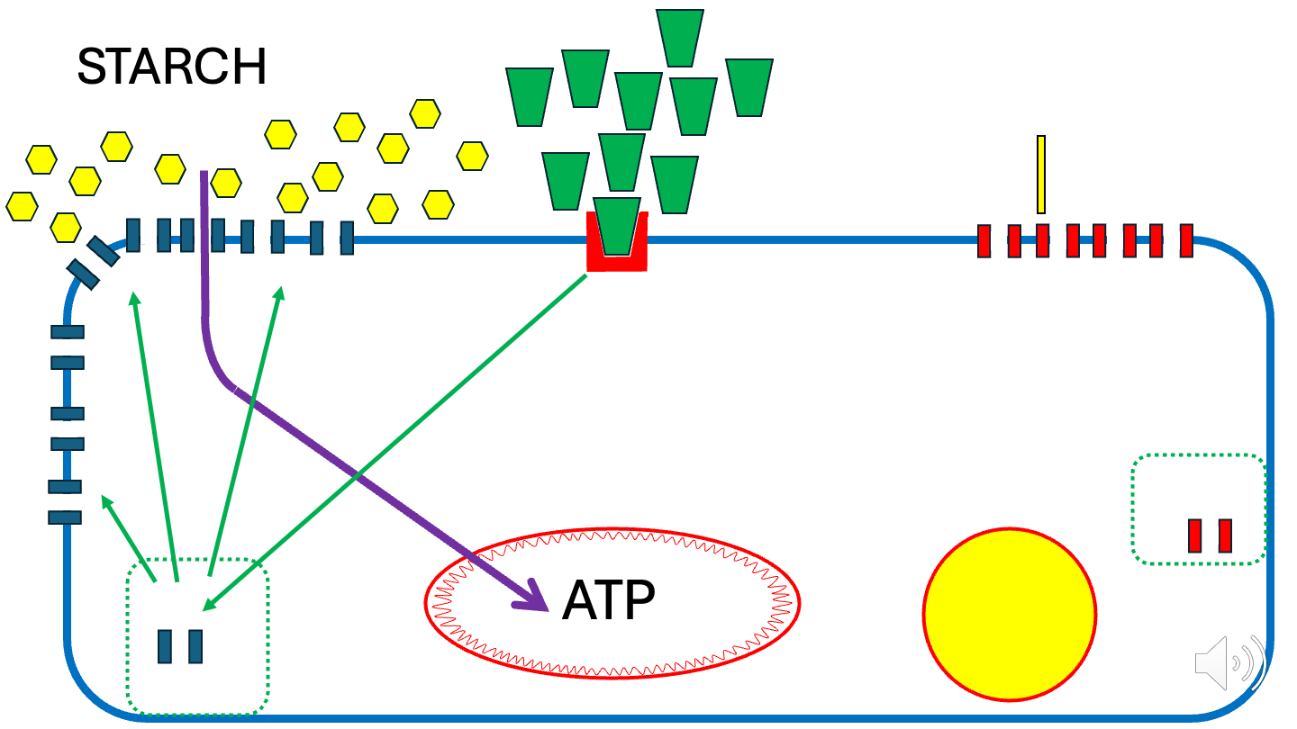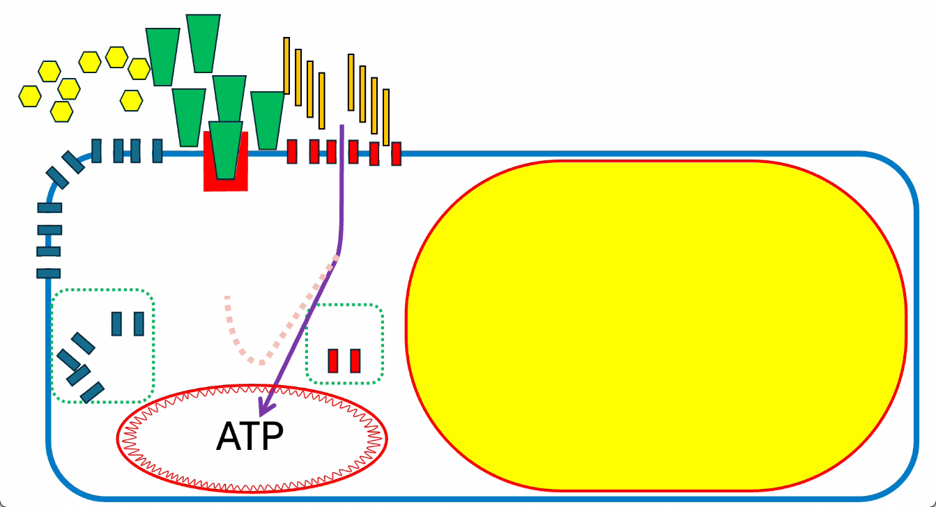 - When the cell is “full” or ATP-replete, it signals to stop more nutrients from coming in, which limits nutrient storage.