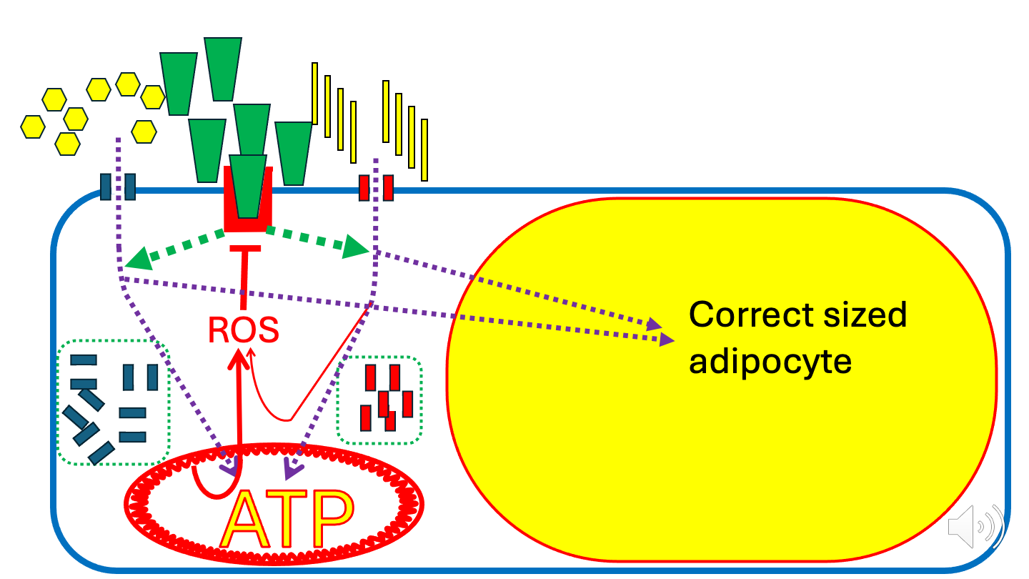 - The adipocyte behaves the same as any other cell except that its specialized function is the storage of lipid droplets, and it’s controlled in the same way by ROS.