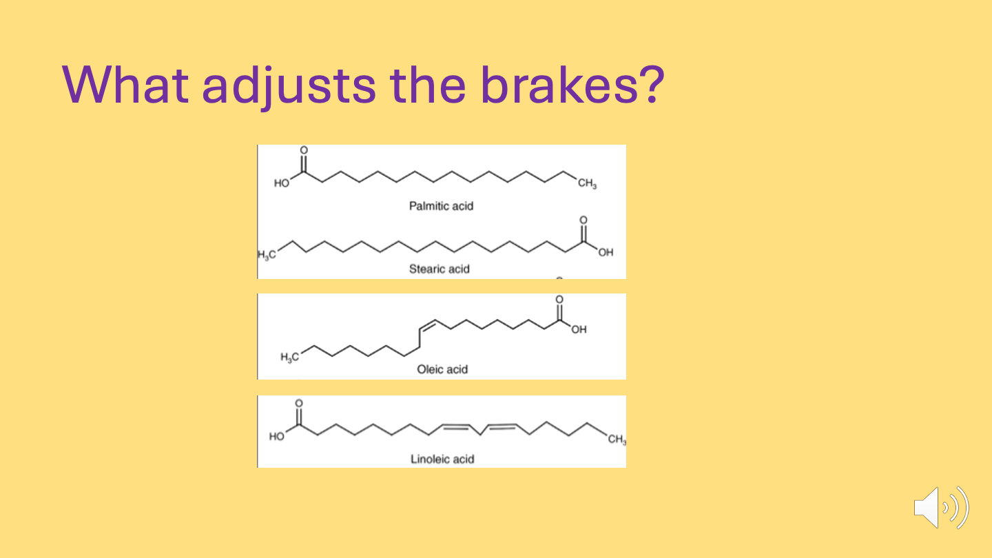 - What adjusts the brakes? The number of double bonds on fatty acids (Figure 25).