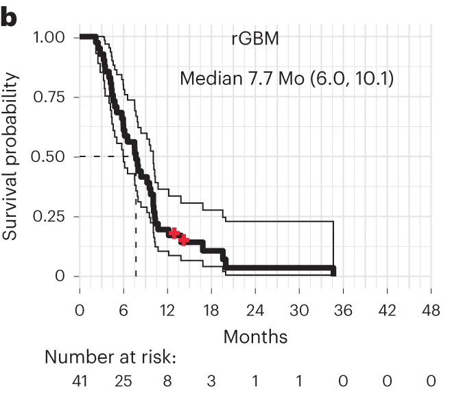 Figure 4 (from Brown et al., 2024) | Overall survival of evaluable rGBM patients from date of surgery