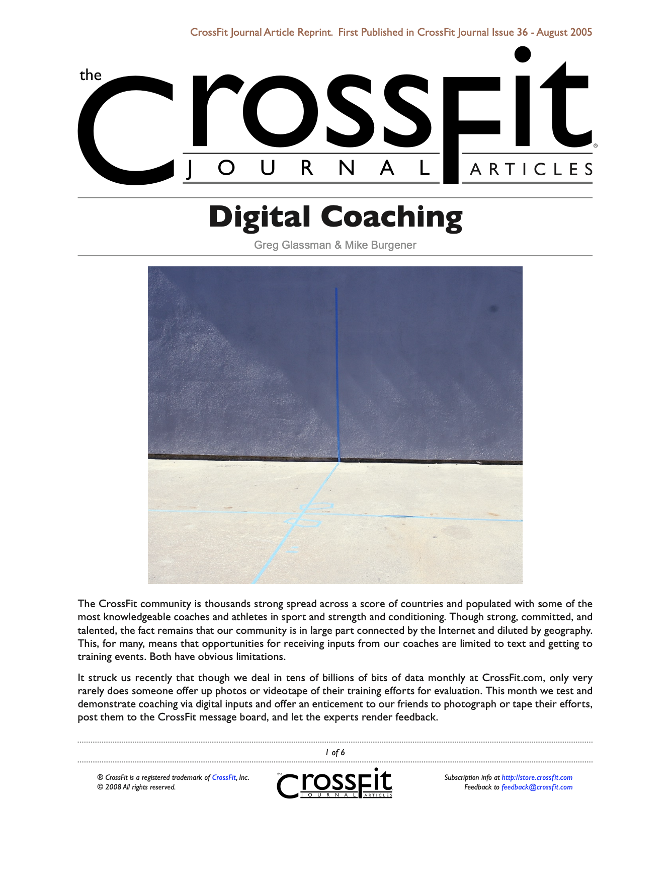Coach Glassman named his training methodology ‘CrossFit,’ which became a trademarked term owned by CrossFit Inc. In order to preserve his writings in their original form, references to ‘CrossFit’ remain in this article.