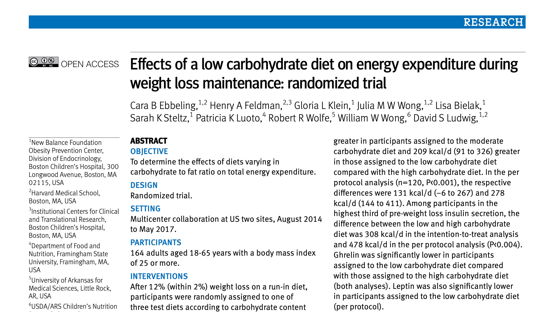 Effects of a low carbohydrate diet on energy expenditure during weight loss maintenance