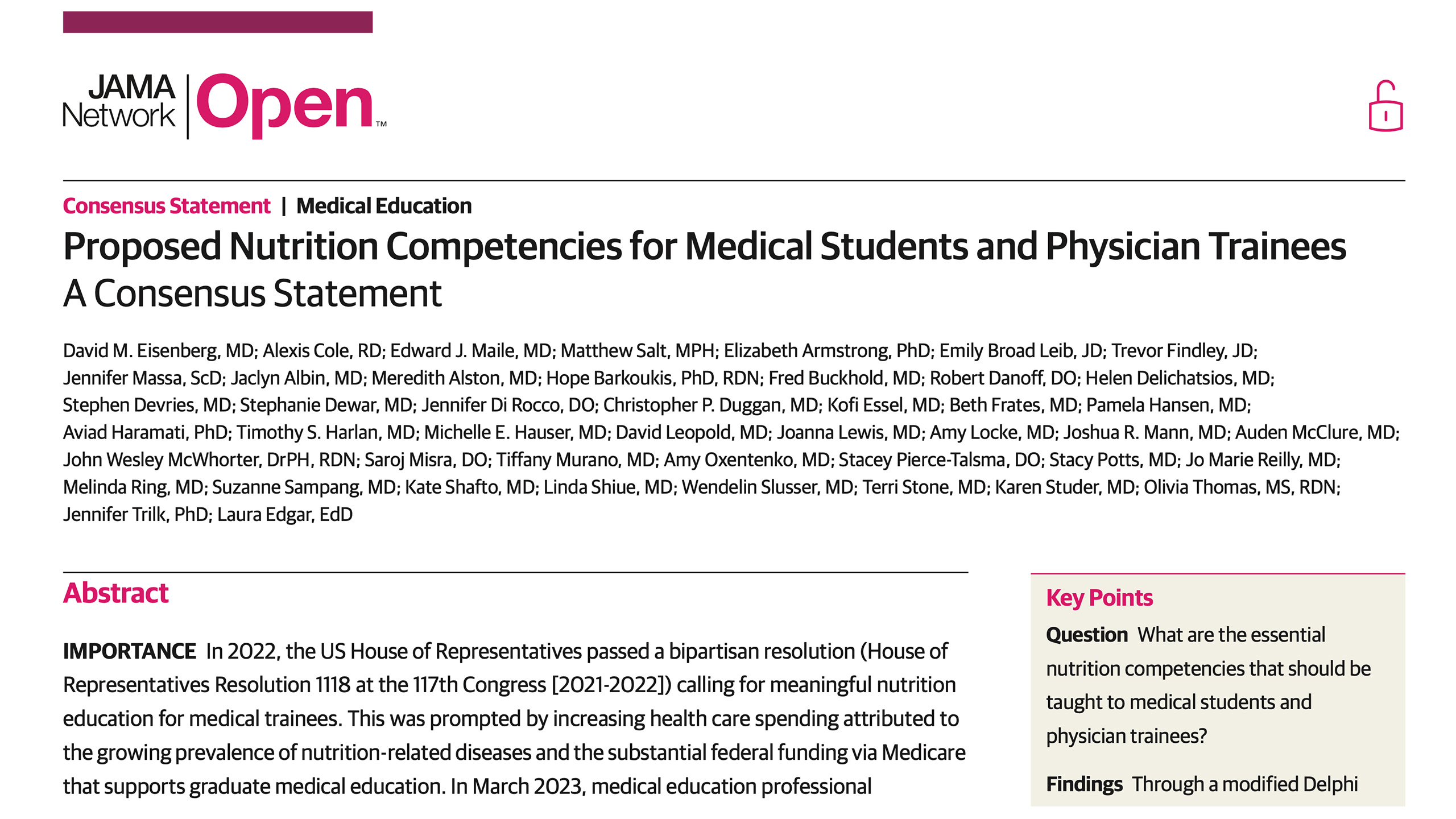 Consensus statement highlighting the gap in nutrition education in medical training.
